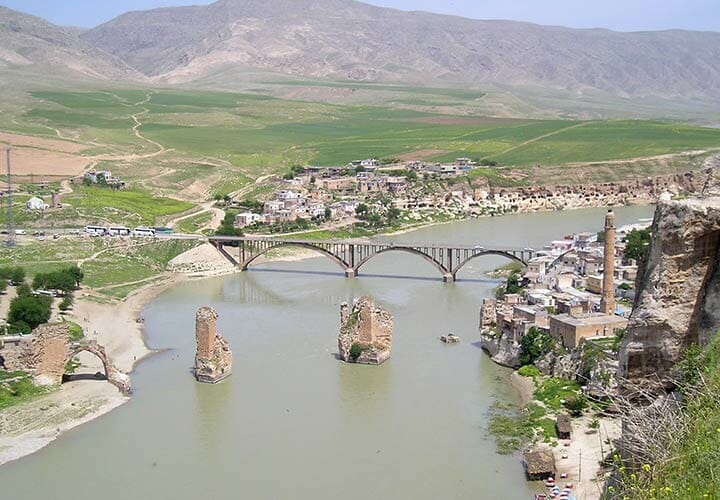 古代都市ハサンケイフの高台には、新石器時代の人々が掘った洞穴と、ビザンチン帝国時代の要塞の遺構が見られます。古代ローマ時代の痕跡がある集落には、シルクロードに沿って架けられた橋など、中世のイスラム建築も残されています。