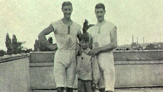 The Dutch rowing coxed pair and Olympic champions François Brandt and Roelof Klein with the unknown French Boy who steered the boat for the finals. / Wikimedia Commons