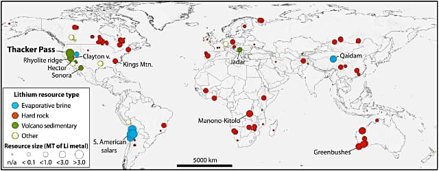 米ネバダ州とオレゴン州の州境にある火山跡、マクダーミット・カルデラ(McDermitt Caldera)にあるタッカー・パス(Thacker Pass)には、推定2,000万トンから4,000万トンの「世界最大規模」のリチウムが埋まっているという研究論文が発表されています。これまでの最大のリチウム鉱床は、ボリビアの観光名所でもあるウユニ塩原の約2,300万トンです(下記YouTube参照)。この鉱床発見は史上最大のリチウム埋蔵量となる可能性があります。
