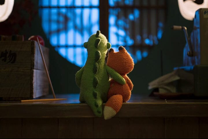 ストップモーション・アニメ Lost & Found(探しものを見つけた)が話題です。寿司屋の落とし物箱に入っていた、ニットの可愛いゴジラとキツネの純愛を描いたショート・アニメ作品です。柔らかい手編みニットの動きが印象的ですが、面白いシュチエーションと「ししおどし」によるストーリー展開、そして手編みニットの愛らしいゴジラとキツネが観客を惹き込みます。