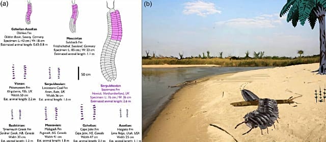 英イングランド北部ノーサンバーランド州の海岸で見つかった巨大なアースロプレウラ(Arthropleura)の化石について、「史上最大の虫」であることが判明しました。生きていた時の体長は幅55cm、全長2.63m、体重50kgに達していたと推定されています。以前最大とみられていたウミサソリを超える史上最大の無脊椎動物になります。虫系のモンスターパニック映画に出てくるような巨大な「虫」です(^^)