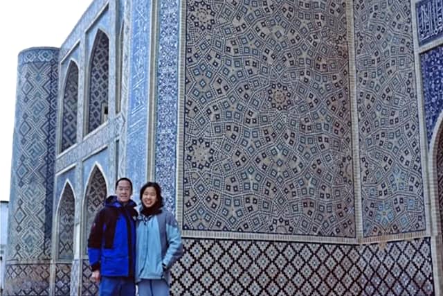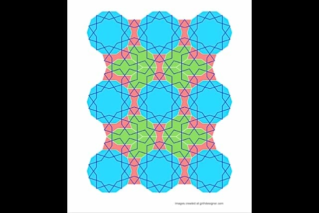 ペンローズ氏のパターンがすごいのは、たった2種類の形から反復することなく、あらゆる方向に限りなく展開していく点です。2種類のタイルで非周期的平面充填ができることは大きな発見だったため「ペンローズ・タイル」と名付けられました。その後、2007年に当時プリンストンの大学院で物理を学んでいたピーター・ルウ(Peter Lu)氏が、休暇で従兄弟とウズベキスタンを訪れた時に14世紀のイスラム神学校でこちらの模様を見つけました。そして、分析をしたところそれは確かに「ペンローズ・タイル」でした。ペンローズ氏が生まれる500年前の建築です。・・(笑)