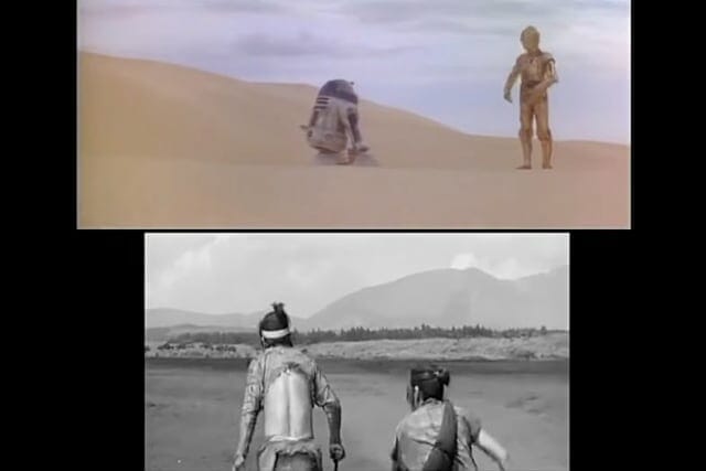 映画「スターウォーズ」のキーパーソンでもある「C-3PO」と「R2-D2」の2体のドロイドのモデルは、「隠し砦の三悪人」に登場する戦国時代の2人の百姓太平(千秋 実)と又七(藤原釜足)であると、黒澤明監督を敬愛しているルーカス自身が認めています。