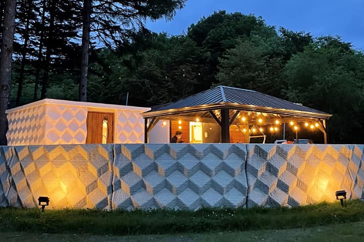 ディマシオ美術館の敷地内に3Dプリントのグランピング施設