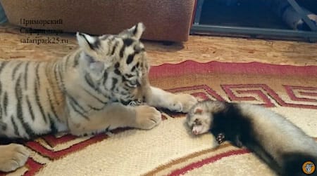 ロシアの極東、ウラジオストク郊外のサファリパークで生まれたアムールトラの赤ちゃんが、イタチ科のフェレットと仲良しになって話題を集めています。 ШЕРХАН АМУРОВИЧ ПОЗИРУЕТ “РОССИИ&…