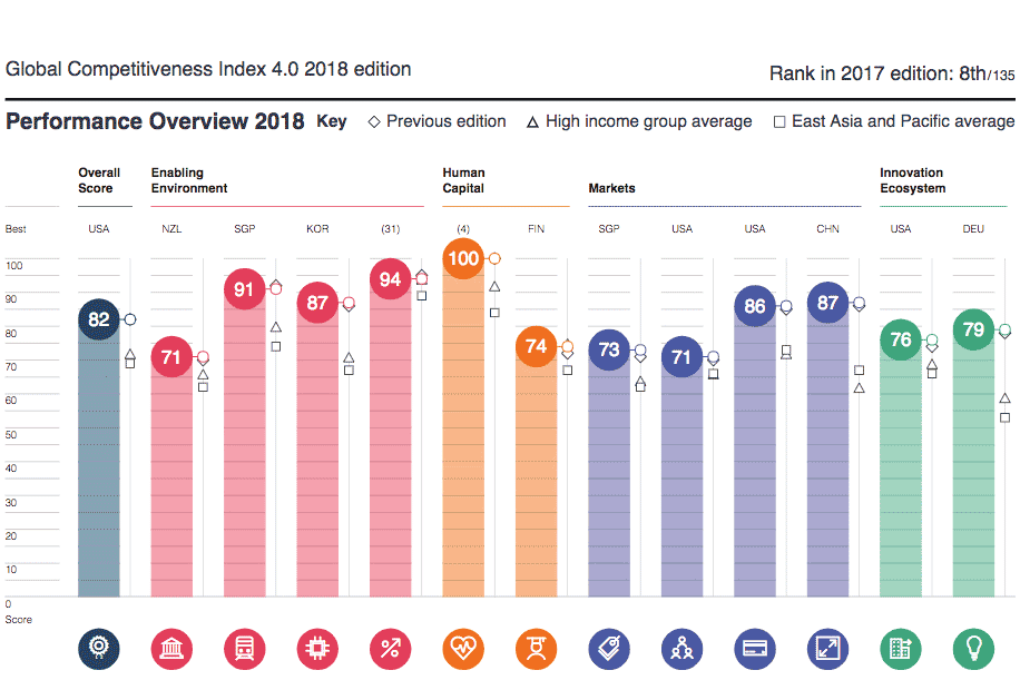 10月17日に世界経済フォーラム(WEF)が140カ国を対象に「国際競争力レポート 2018」を発表しました。国際競争力インデックス4.0(GCI 4.0)では、米国が10年ぶりに首位に返り咲き、2位シンガポール…