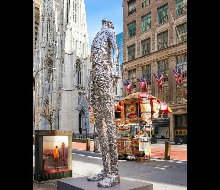 2016年にパーク・アベニュー(Park Avenue)の53丁目に現れたときは、全長約10メートル(33.3フィート)ほどもあります。りばてぃさんは、「上空を見上げるこの巨人像につられて皆にも上を向いて欲しい・・・というのが、Tom Friedmanがこの作品に込めた想いなのだとか。」と紹介しています。